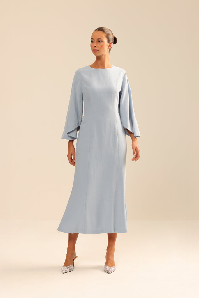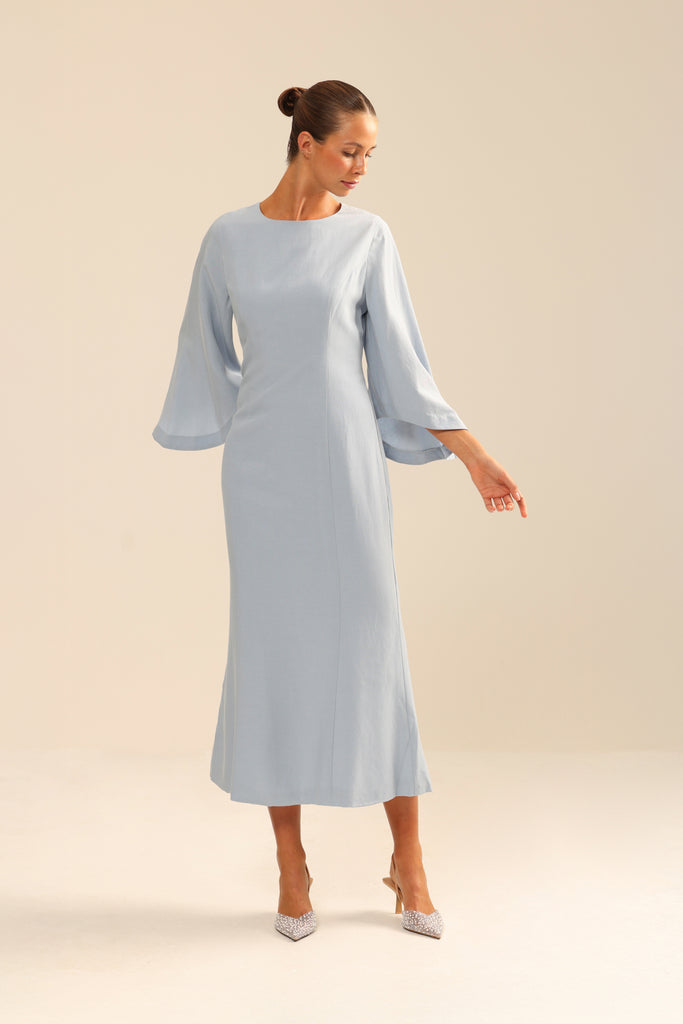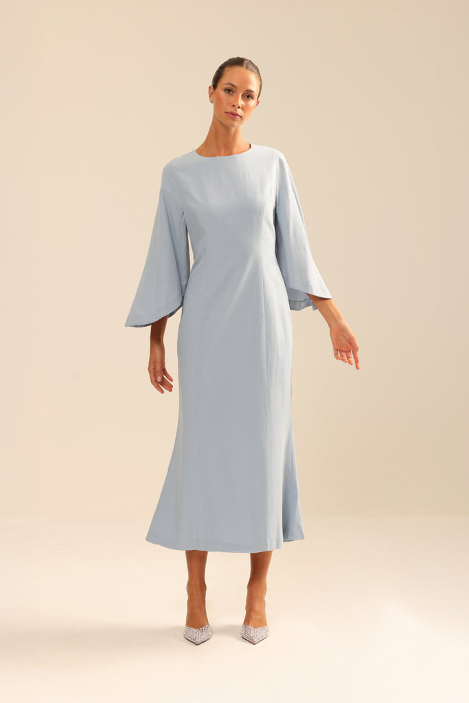 Binny - The Champagne Bar - Linen Rayon Midi Dress Everest Blue
