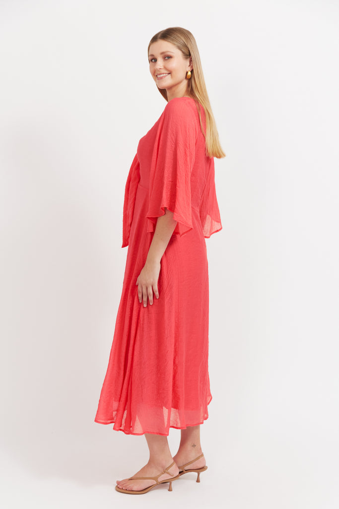Haven - Baja Tie Midi Dress - Punch