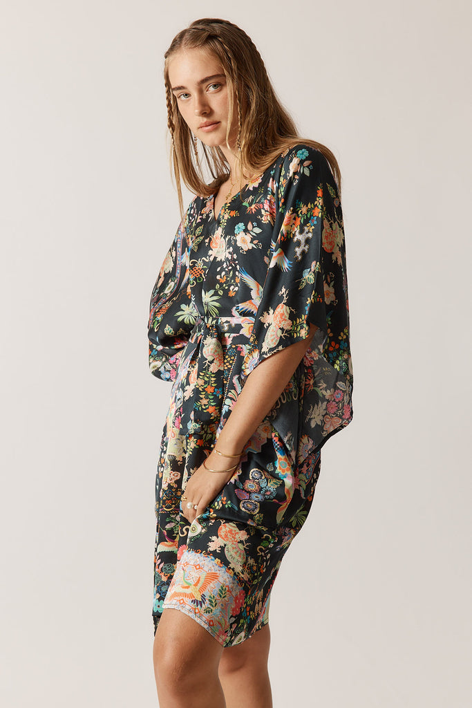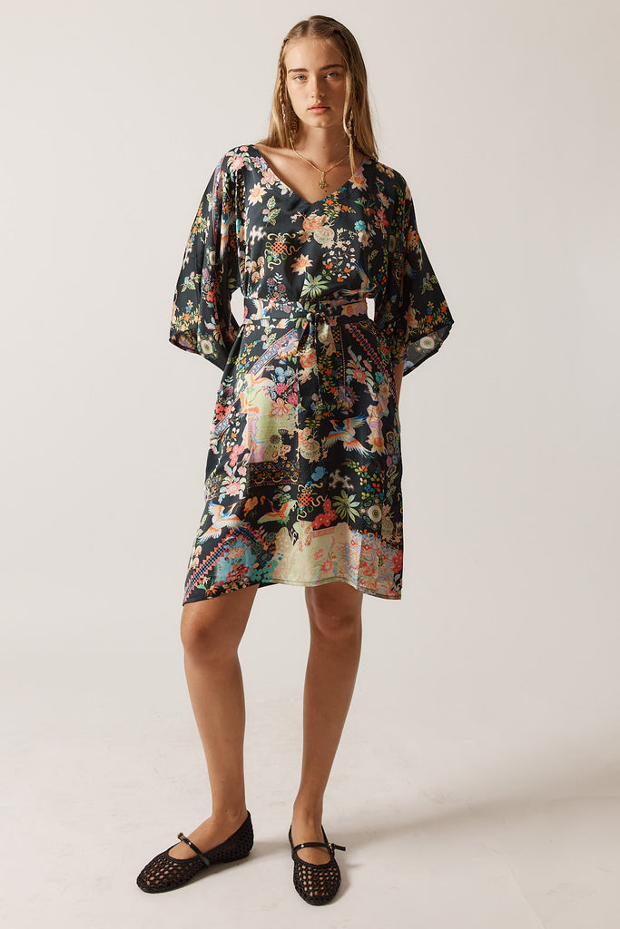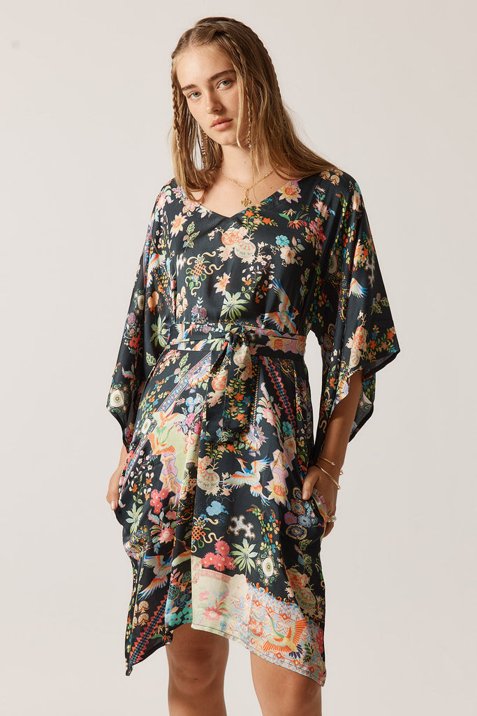Holiday dressing calls for pieces that strike the perfect balance between relaxed and refined, and the Rubyyaya Lala Dress delivers exactly that. Cut in luxurious 100% viscose satin that flows beautifully through an A-line silhouette, it features a flattering V-neck and wide sleeves that create an elegant drape. The thoughtfully designed self-optional belt allows you to define your waist or wear it loose, while the knee-length cut pairs beautifully with everything from flat sandals to wedges and statement jewellery.