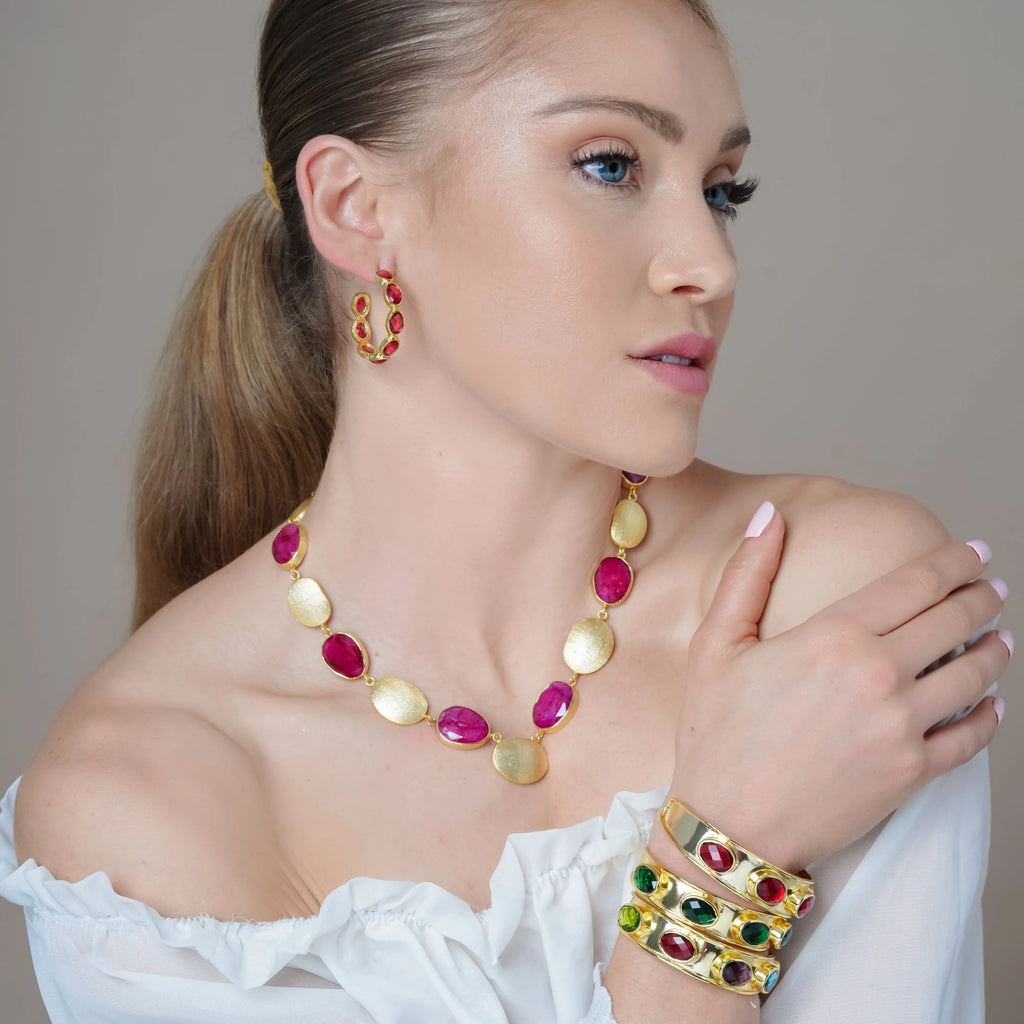 Discover our exquisite Dako Brass Necklace in Raspberry, a breathtaking and handcrafted creation. This stunning, artisanal piece combines the two elements for a unique and beautiful look.