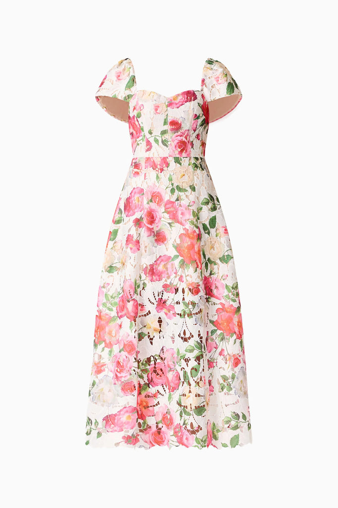 Perfect for wedding guest moments, garden parties, or formal daytime events, this pink floral midi pairs effortlessly with neutral heels and delicate jewellery for a fresh, occasion-ready look.
