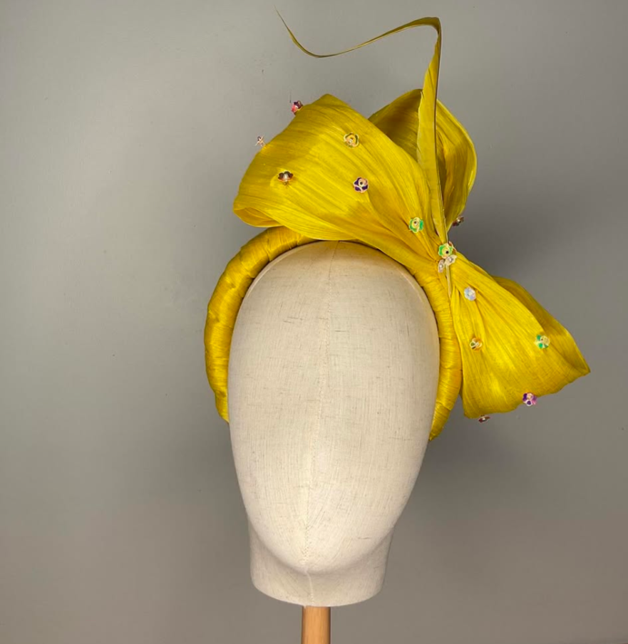 Melanie Ferrero - Yellow Silk Abaca Band w Big Bow