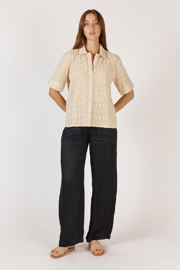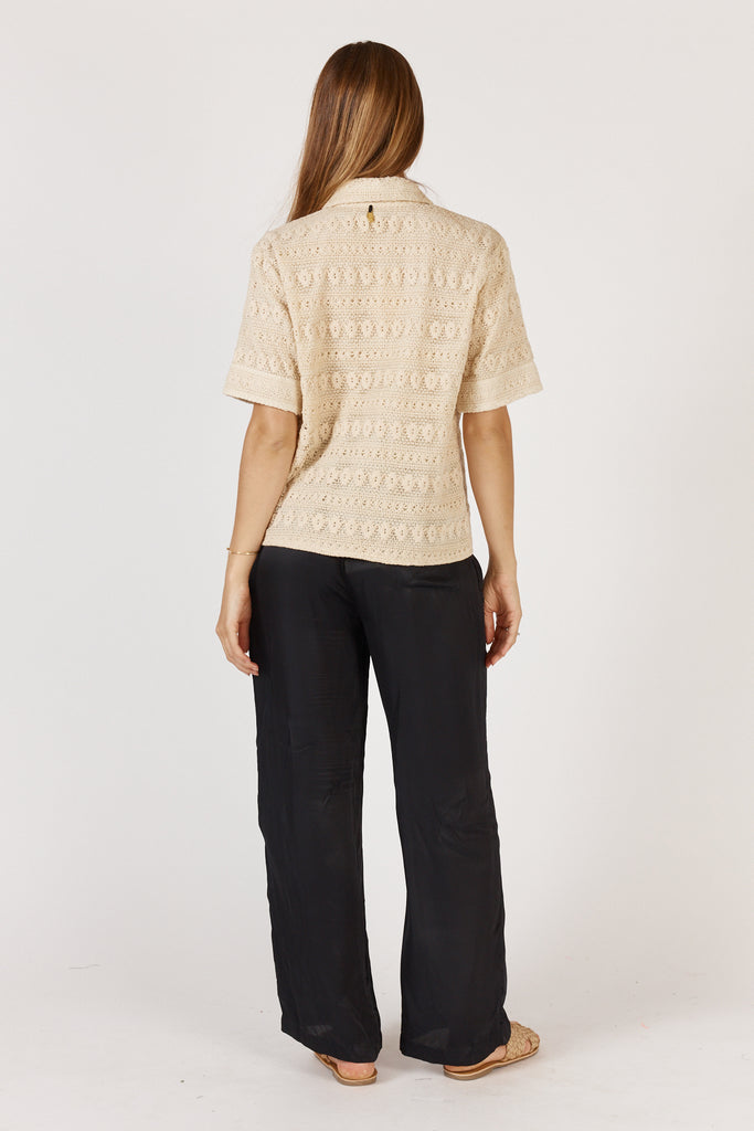 Effortlessly chic, the Rubyyaya Columbus Shirt in Cream is crafted from 100% breathable cotton mesh. Featuring a short sleeve, collared design and luxe diamante buttons, this button-through shirt is perfect for warm weather styling. Designed in Australia, it blends comfort with understated elegance. Gentle machine washable and easy to wear, it's a wardrobe must-have for any season.